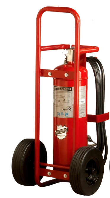 Buckeye 50lb Wheeled Dry Chemical fire extinguishers have large-scale fire protection covered. Available in three size capacities with three choices of extinguishing agents and different operational design configurations (stationary or non), the best match for hazard protection needs can be accurately selected–maximizing the fire safety of an operation.