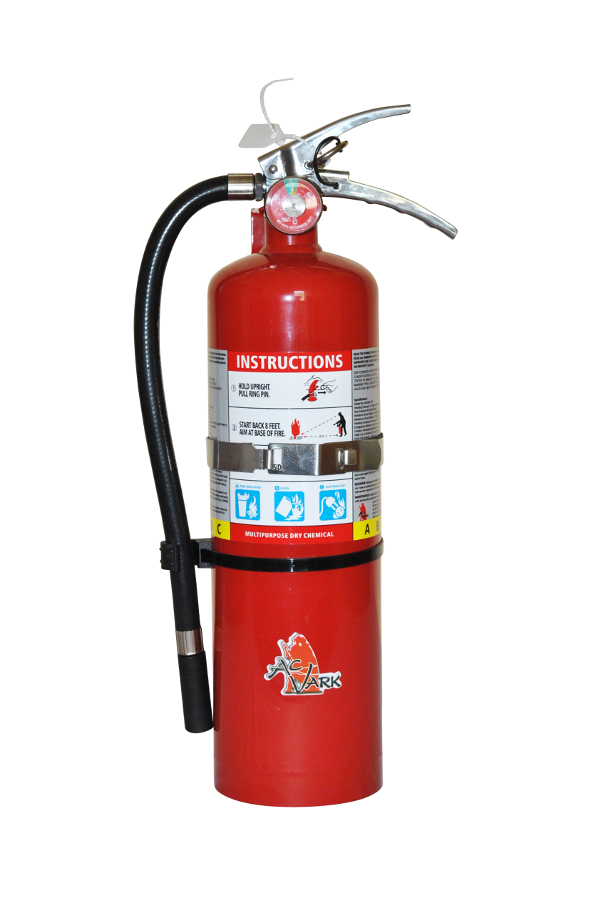 Acvark's 5-pound fire extinguisher, which uses monoammonium phosphate, is formulated to fight Class A, B and C fires. Often referred to as an "ABC" fire extinguisher, this versatile device is suitable for use in a variety of settings, including homes, offices, warehouses, vehicles, farms and woodworking spaces. 5lb ABC Powder Extinguisher (UL Standard). Model Number: 1021