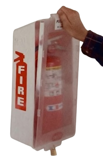 This is a Mark I Jr. Cabinet (M1J Series) Maximum extinguisher 16 ¾". White Tub/Clear Cover for indoor use.